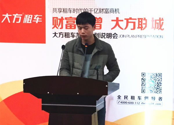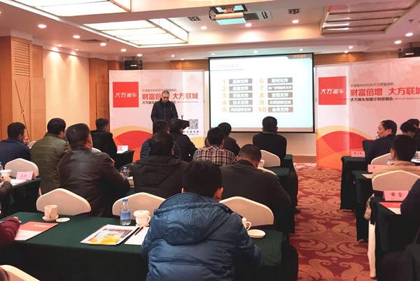 12月19日,中国连锁租车、行业十强品牌大方租车2015年最后一场加盟计划说明会在武汉隆重召开,这是大方自开放全国租车加盟以来举办的第37场招商会,会议主要围绕中国租车行业发展现状、大方加盟项目核心投资亮点及加盟政策等内容展开,来自全国各地的数十位投资商受邀参加。