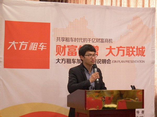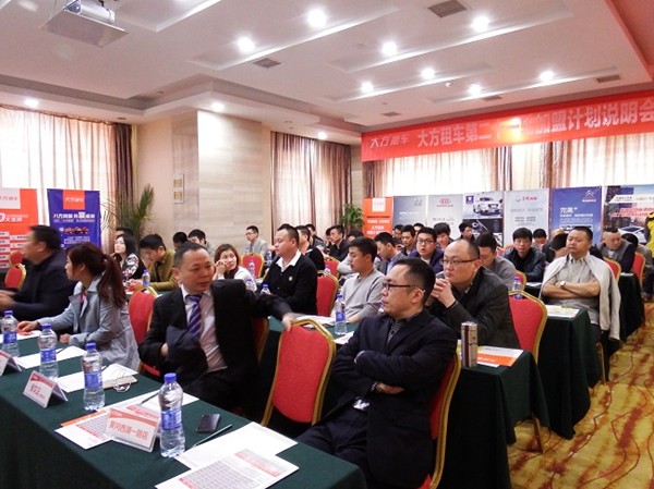 加盟会现场,营运支持部江经理在介绍技术支持环节时还特别地演示了手机微信下单,关注大方微信号,在线订车里点击短租或长租服务,GPS定位附近的大方门店,当然过程中也可以选择各城市和门店,选好日期和车型可立即下单,真正实现神速下单。在场的加盟商也纷纷掏出手机,尝试手机下单,其方便、快捷的效果得到大家的一致认可。除了技术平台的强大支撑,大方也在品牌、金融、采购、培训、推广、管理、车辆更新、会员以及众人忧心的风险管控方面也给予支持,让在场的加盟商吃下一颗定心丸。